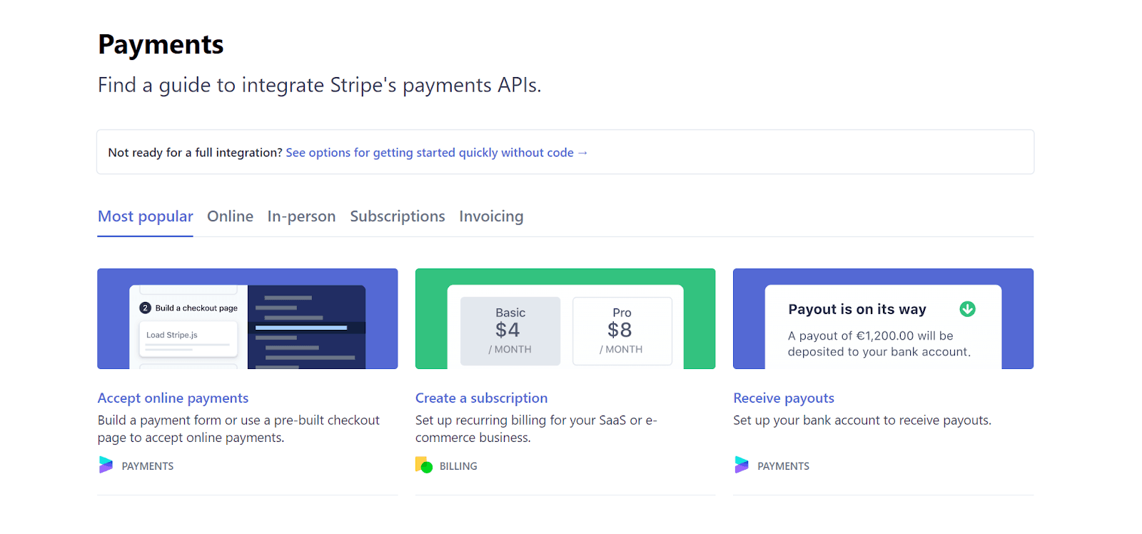 Notice how the article titles represent different tasks the user might want to complete using Stripe. That’s a good example of a task-based topical structure.