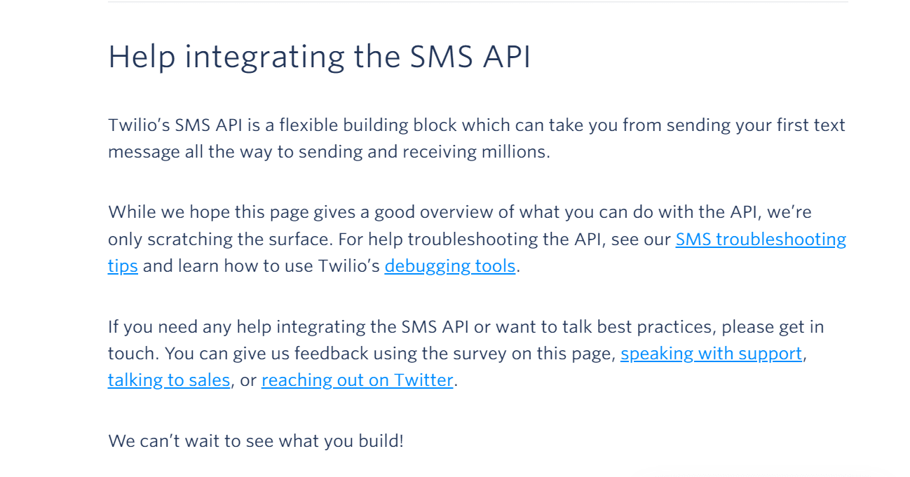 In the above example from Twilio, information is given in short bursts and every paragraph represents just one idea.
