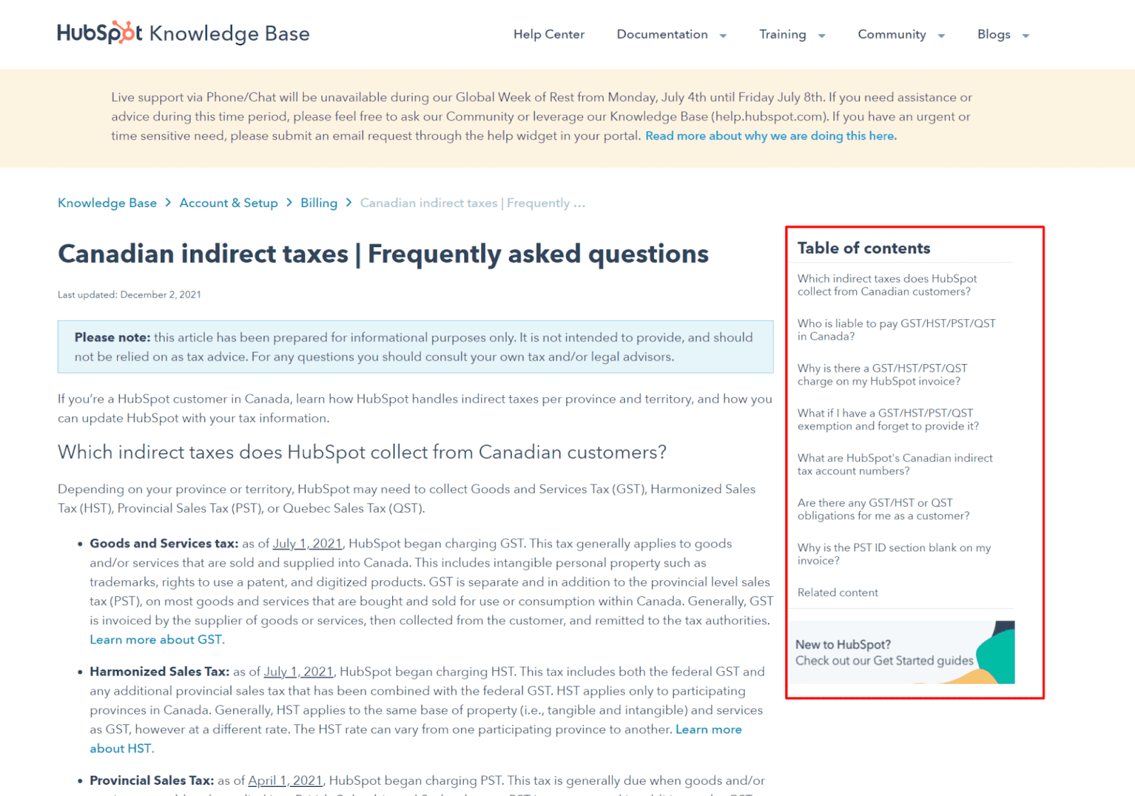Quality documentation sites usually have a table of contents right underneath the headline or on either side of the page.