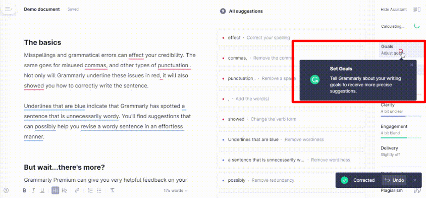For instance, Grammarly uses a demo document to show users how to work with the tool. Also, hotspots guide users to the features, while tooltips explain them.