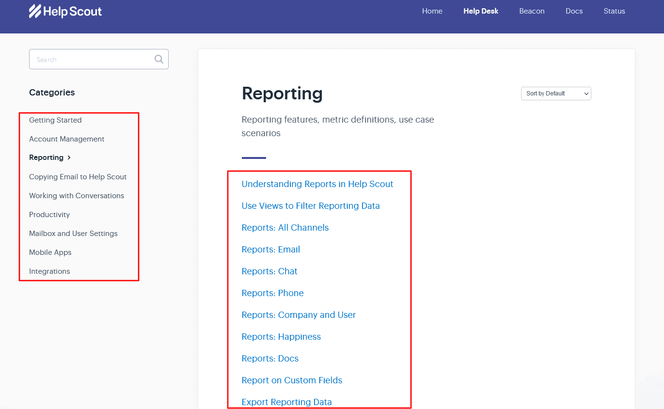 For example, Help Scout’s knowledge base has nine categories, each of which includes many topics.