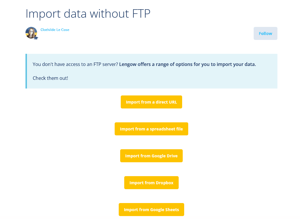 For example, take a look at how Lengow offers different paths for users with different needs: