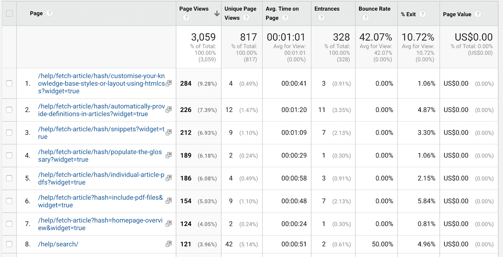 This metric essentially shows you what articles your customers read the most. That can indicate a number of different things.