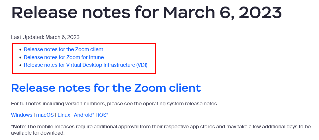Zoom’s release notes aren’t particularly visually memorable, but the most important thing is that they deliver the necessary information, which they do in great detail.