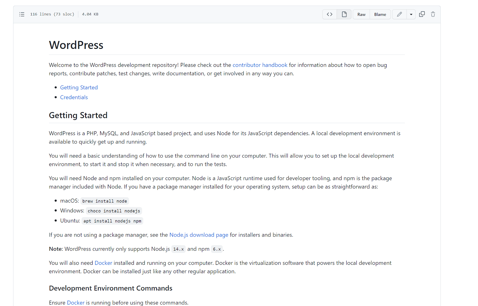 Let’s stick with our WordPress example and have a look at what its README file looks like.