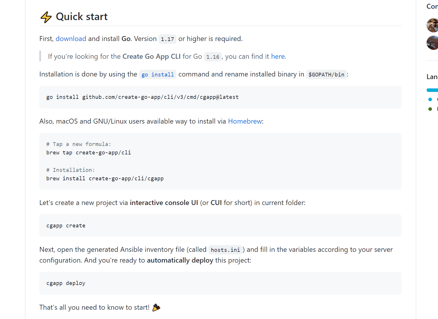 Here’s a great example from Create Go App CLI.