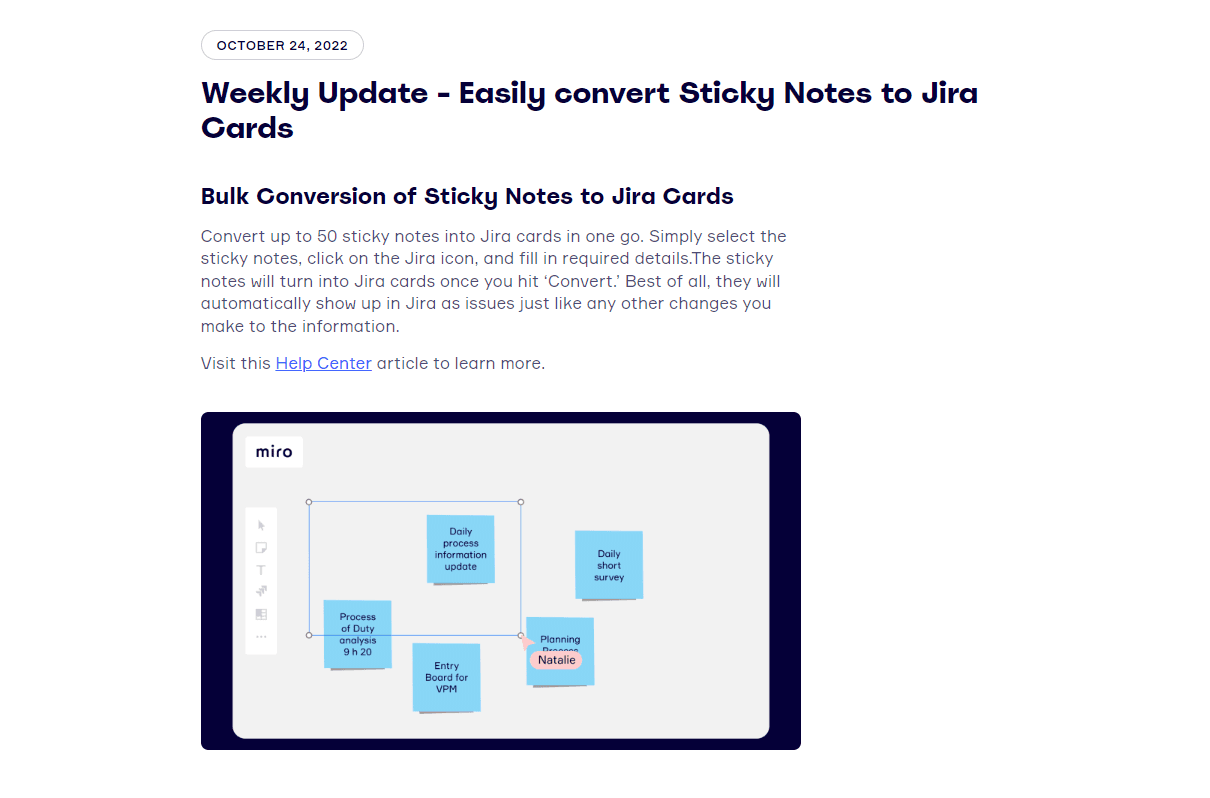 For example, it’s very common for release notes to be delivered via email because they can easily align with a company’s strategy to keep educating users about the product.