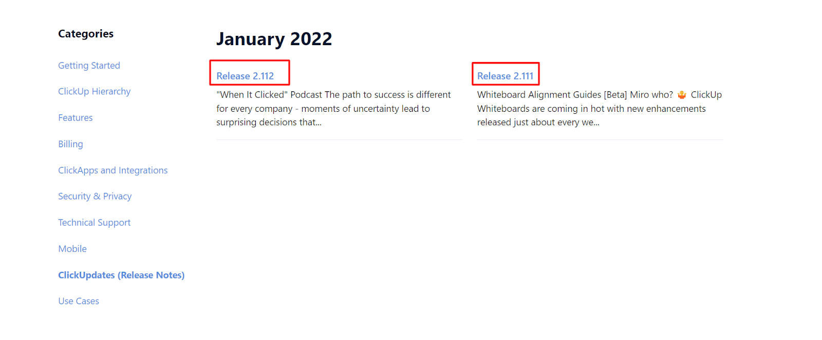 That’s the case with ClickUp. Their release notes are marked with a number to make it easier to keep track of them, since they are published multiple times a month.