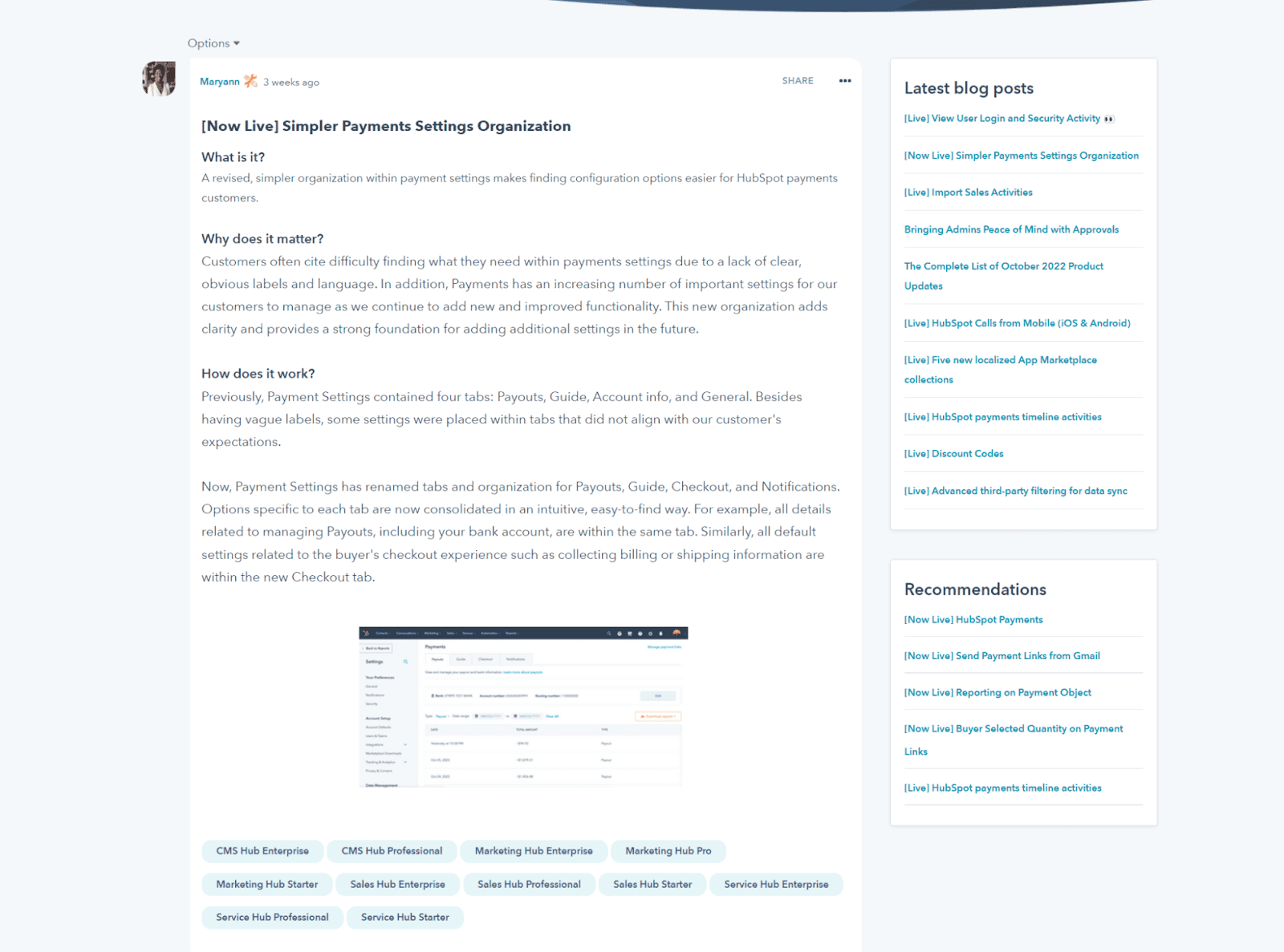 For example, note how Hubspot release notes include the “what, why, and how” behind their updates to help users quickly understand how the change affects them.