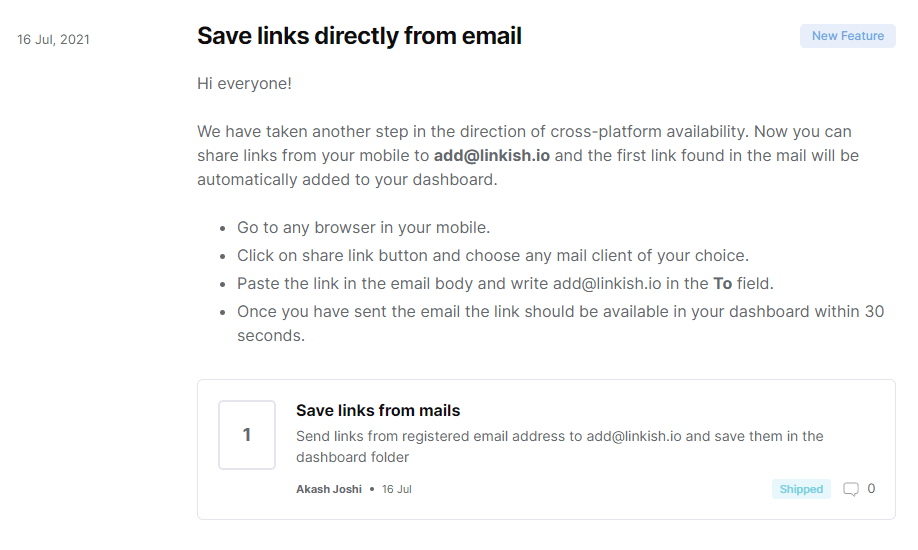 Some dedicate a section of their website to displaying release notes so that visitors to the site can get a sense of how dynamic and active your company is when it comes to product development, while others share updates via email, as a part of their newsletter strategy.