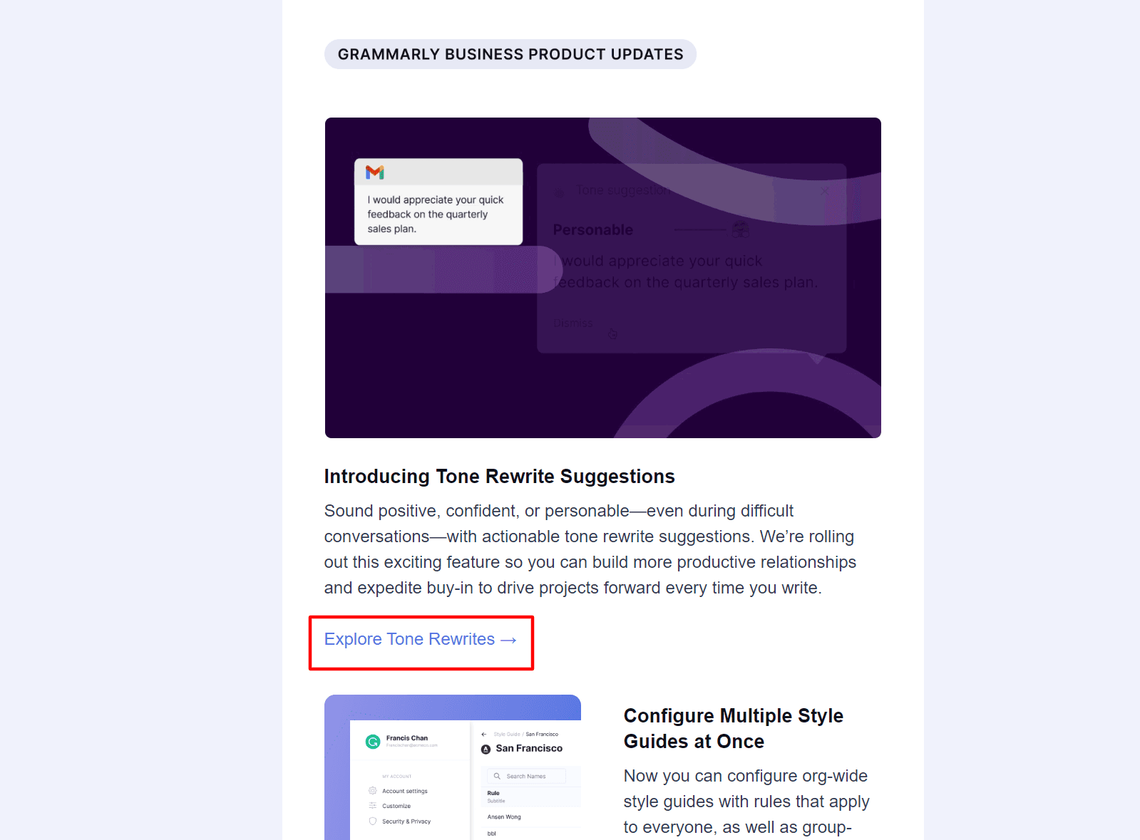 Note that this message contains a CTA link that will transport the user to the new feature so they can try it out right away.