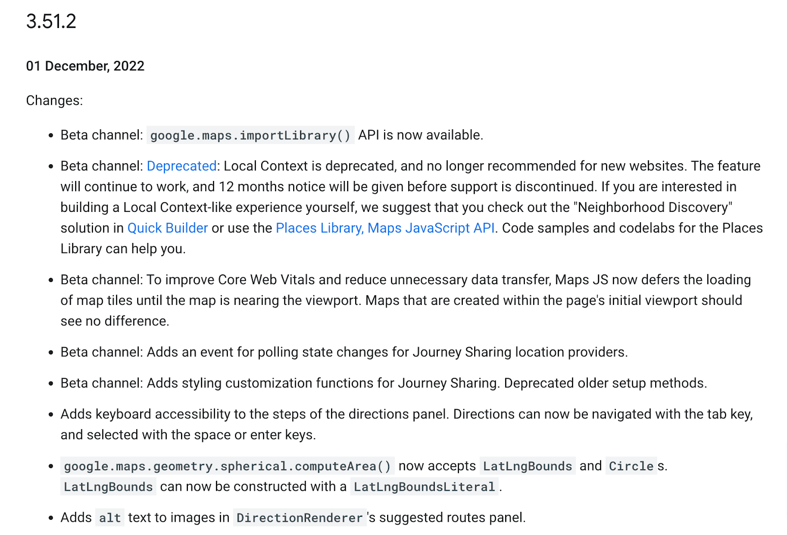Consider the API release notes for Google Maps: