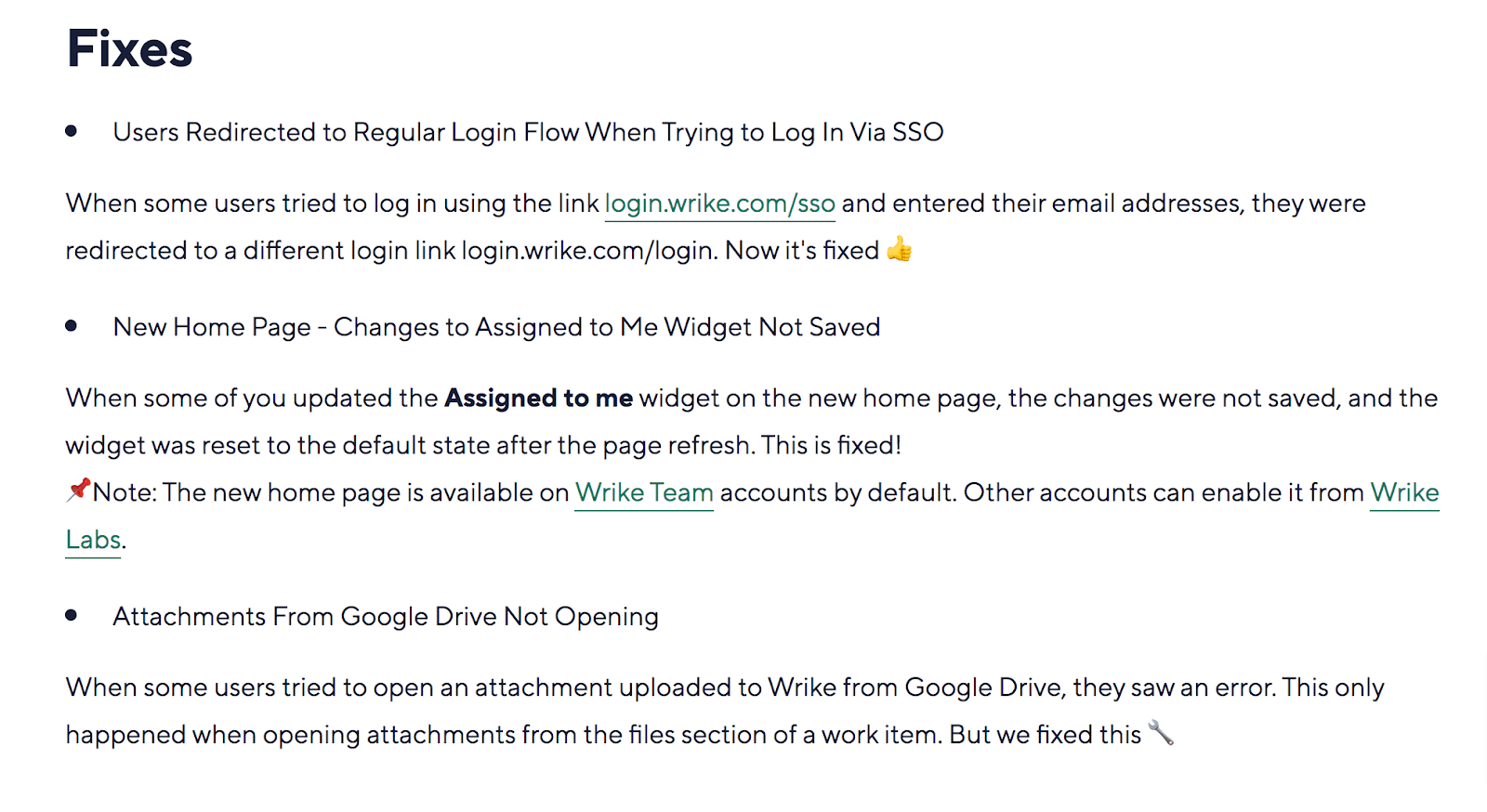 For example, look at Wrike’s release notes: