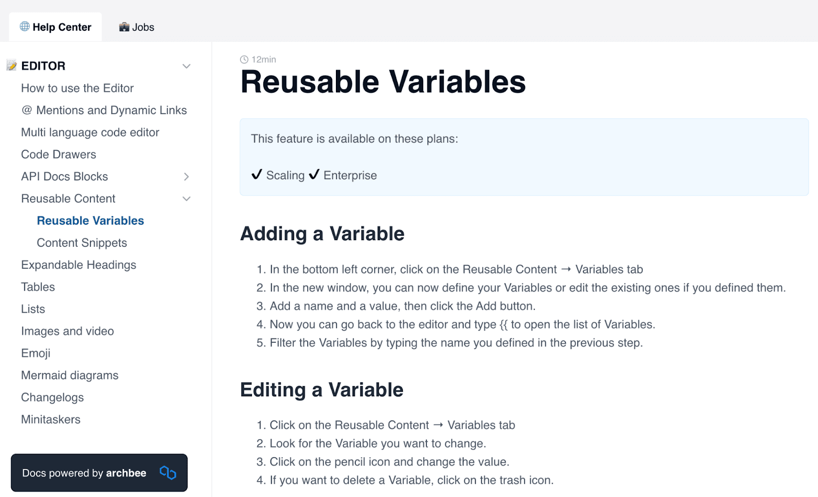 Each of these links redirects to Archbee’s documentation, which explains the feature in detail. For example: