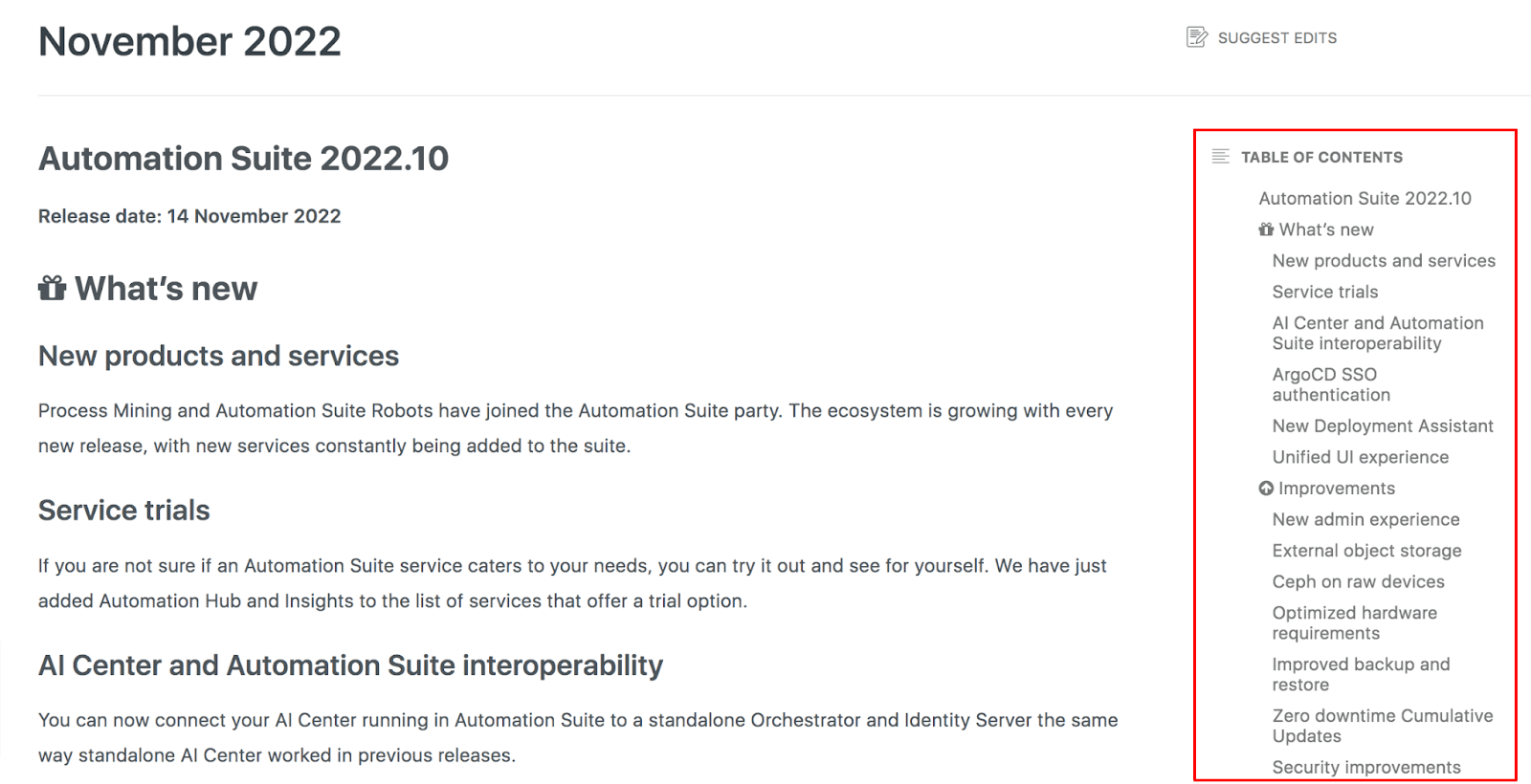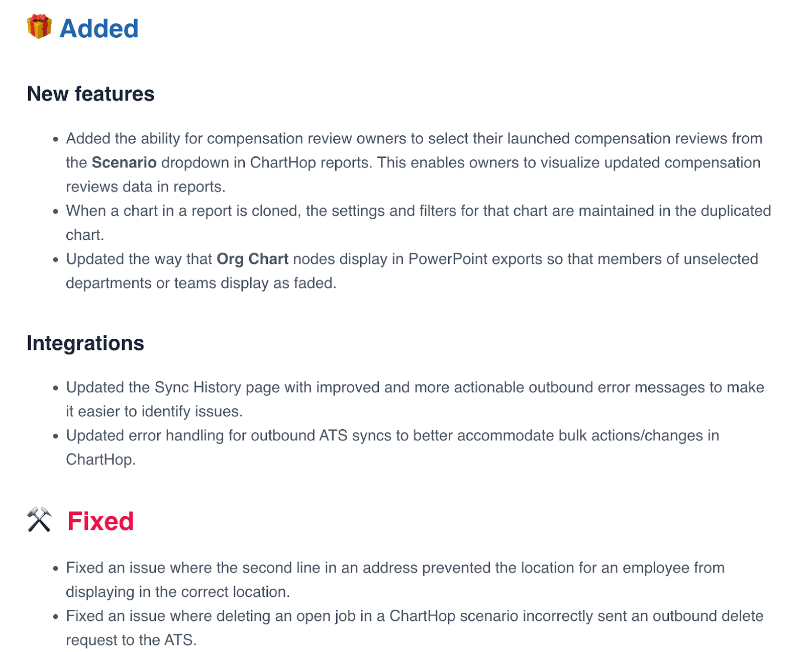 These headings are especially useful when you have longer release notes. Lengthy release notes often also contain a heading titled “Overview” or a table of contents for easier navigation.