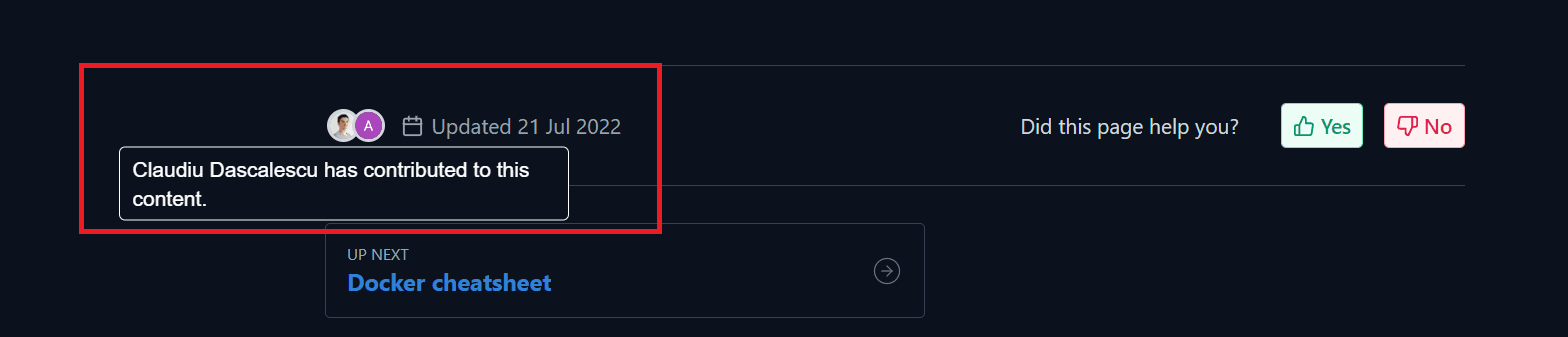 Quality documentation software usually comes with this feature. Here’s how it looks in Archbee. Just hover your mouse over the icon of the author at the bottom of the page.