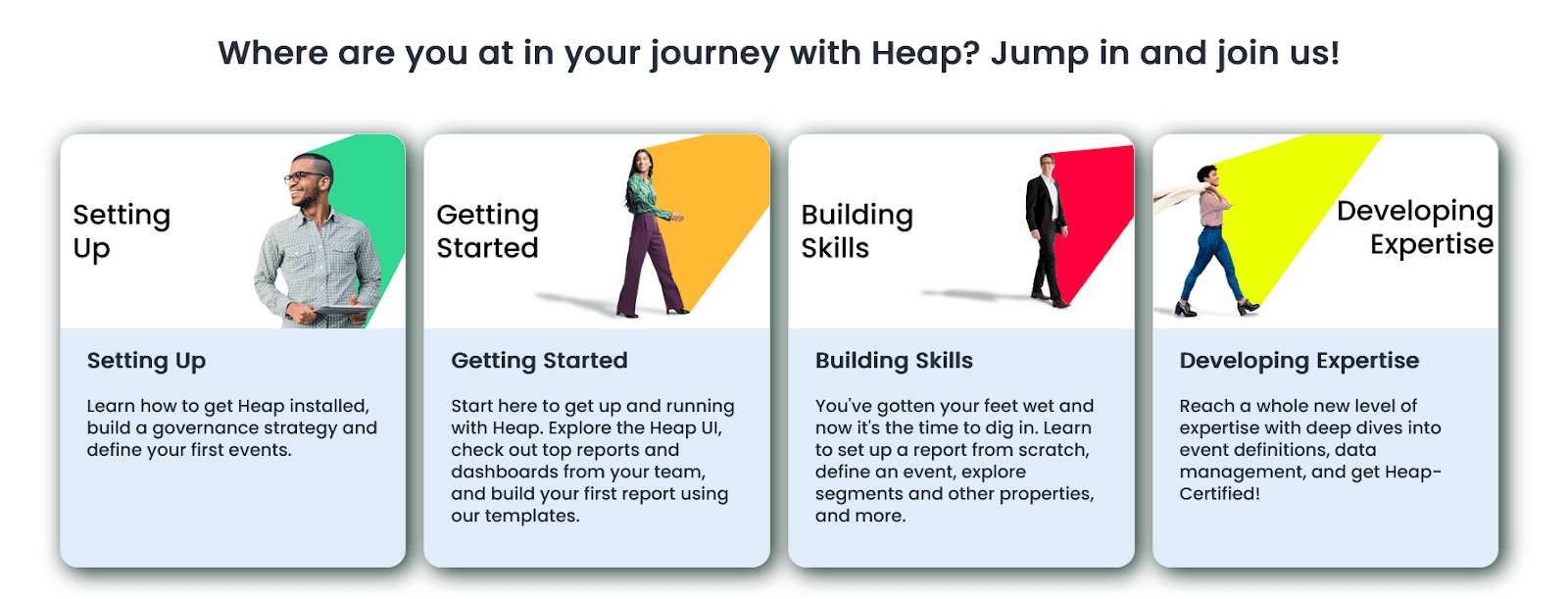 But there is also a Heap University that offers courses on different topics and experience levels.
