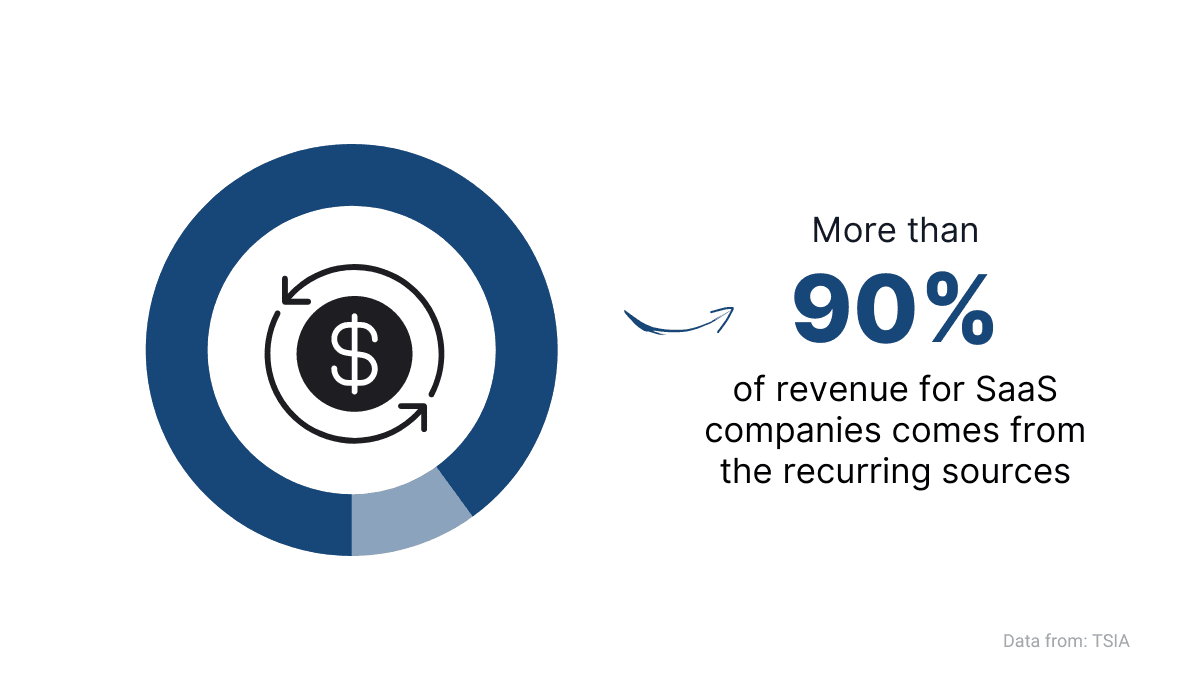 Also, keeping existing customers is crucial, especially for SaaS businesses. According to data from TSIA, at least 90% of their revenue comes from recurring resources.
