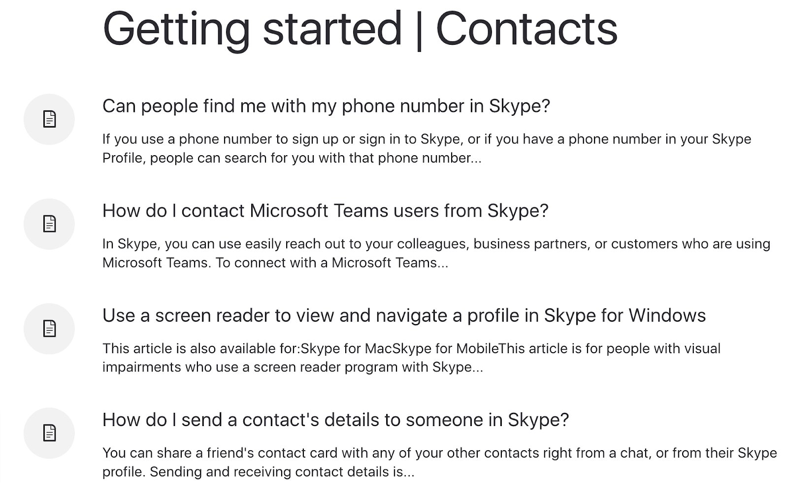 Skype’s documentation is a good example: