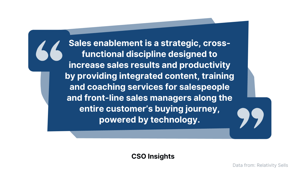 This is part of a process called sales enablement, defined below: