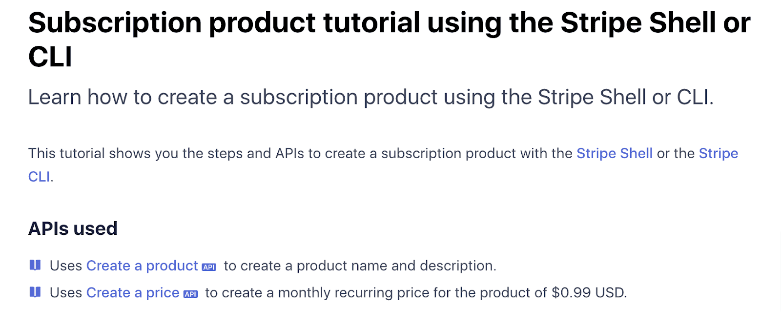 This excerpt is from Stripe’s documentation and teaches developers how to use a subscription product.
