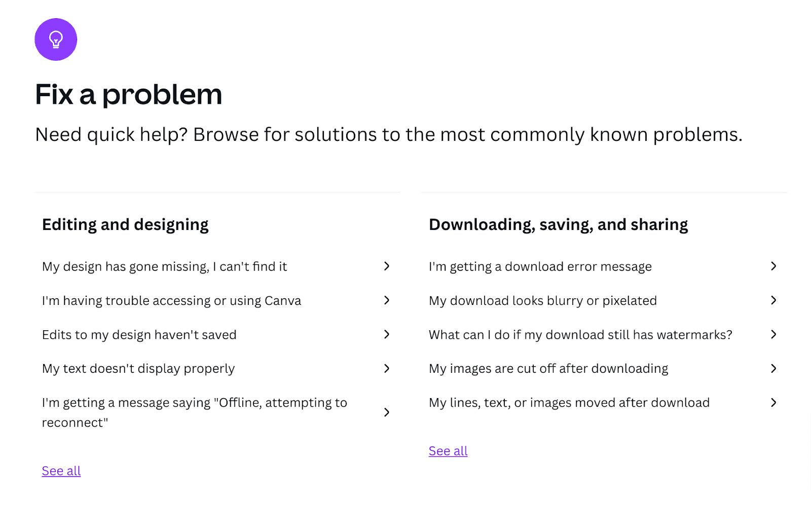 With this resource, Canva users will probably be able to resolve errors in a few moments. Instead of waiting several hours (or days) for a representative, they’ll fix their issue in under 15 minutes.