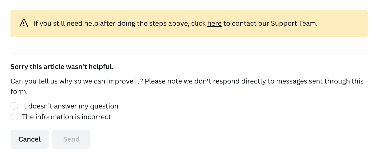 Readers can send in a customer support ticket if they don’t find a particular article helpful, and they can receive additional assistance.