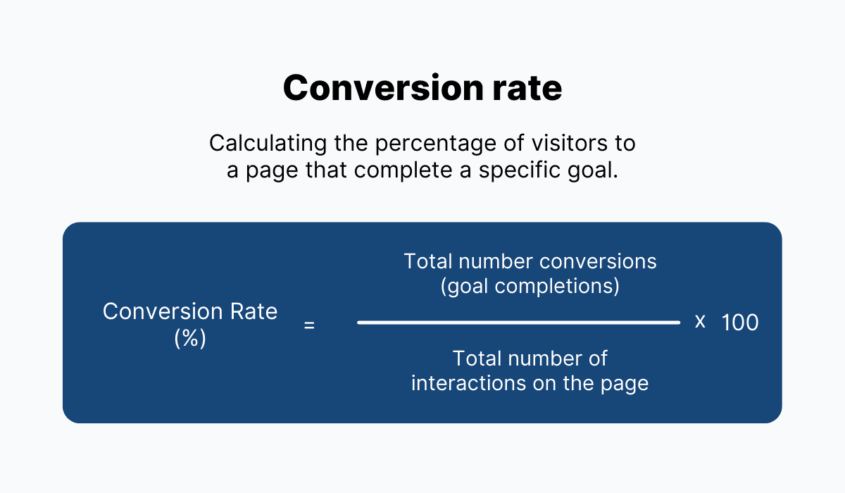 In performance analytics, this figure is usually expressed as the ratio of conversions to the total number of interactions on the page.