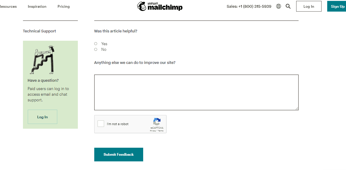 Unsolicited feedback is meanwhile collected using on-page elements where users can speak out about their issues, like the one from Mailchimp below: