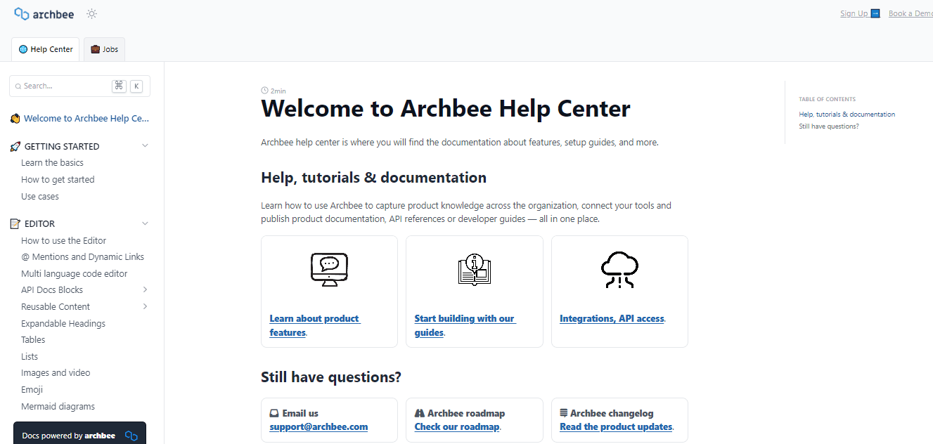 Archbee takes a different approach by providing every feature imaginable and supporting users throughout their visit to the user documentation.