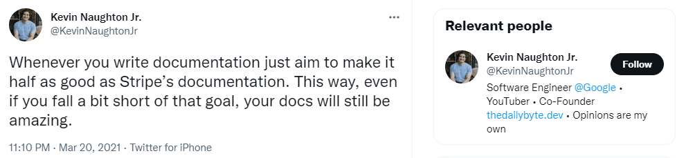 Stripe, the payment processing platform, is quite famous for its no-fuss, neat and clean approach to documentation.
