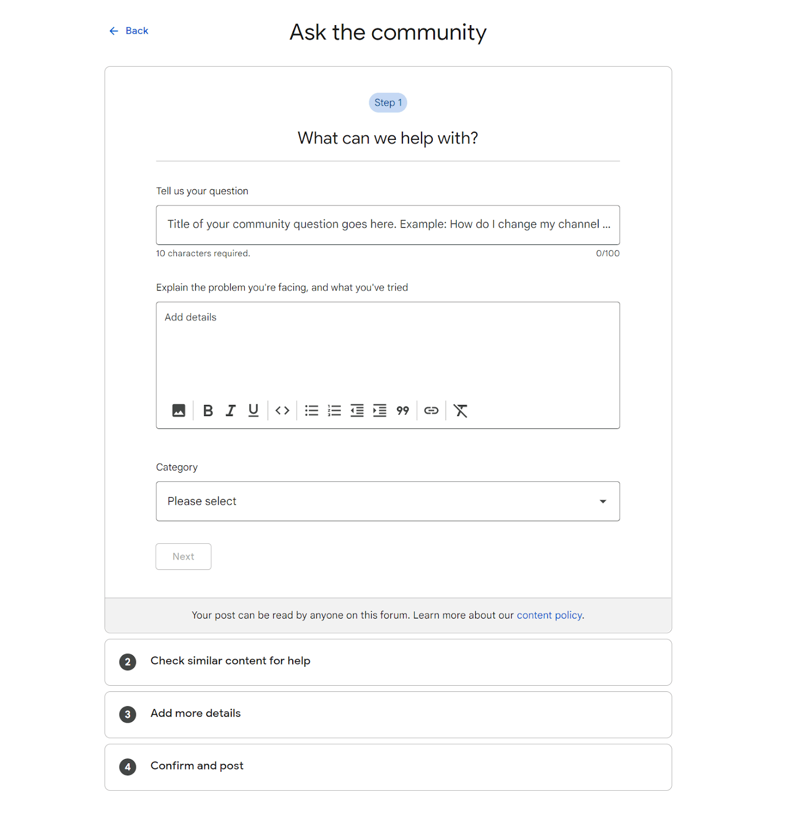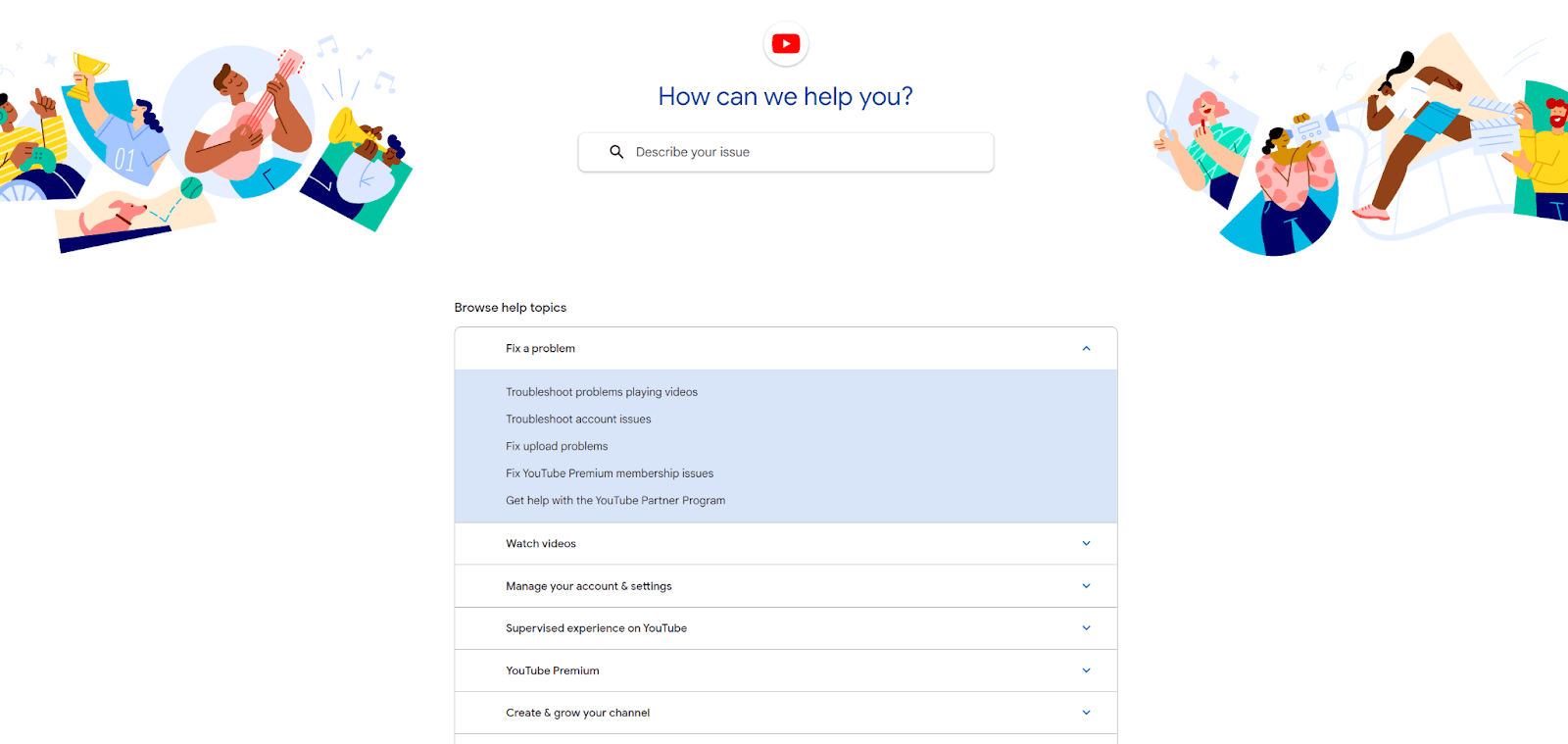 Right under it, you’ll also find a selection of help topics that provide the answers to the questions and issues users often have when using YouTube.