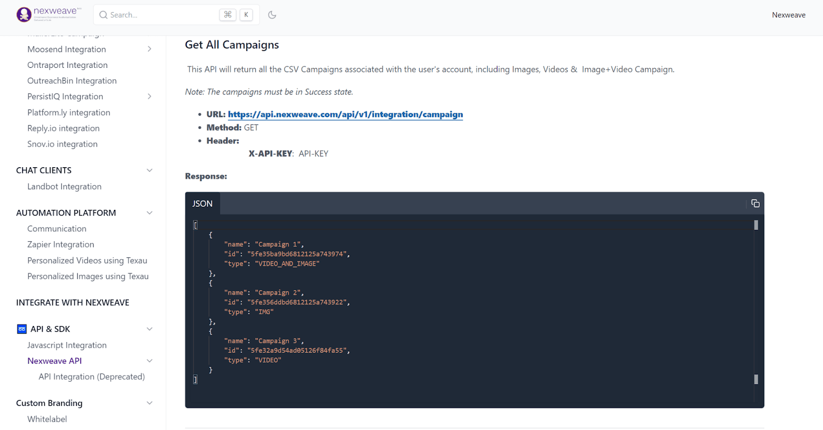 Take Nexweave, the GIF-making company whose documentation you can check below.