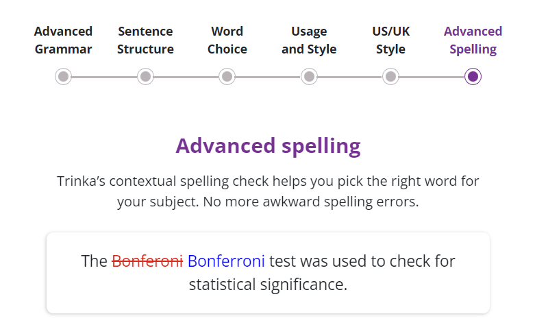 This tool uses AI for contextual spelling checks, among other features, making the vocabulary suggestions more relevant for the subject you’re writing about.