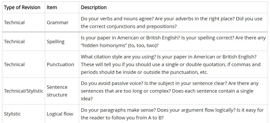 As you can see, it covers standard editing practices, such as inspecting sentence clarity and the logical flow of thoughts.