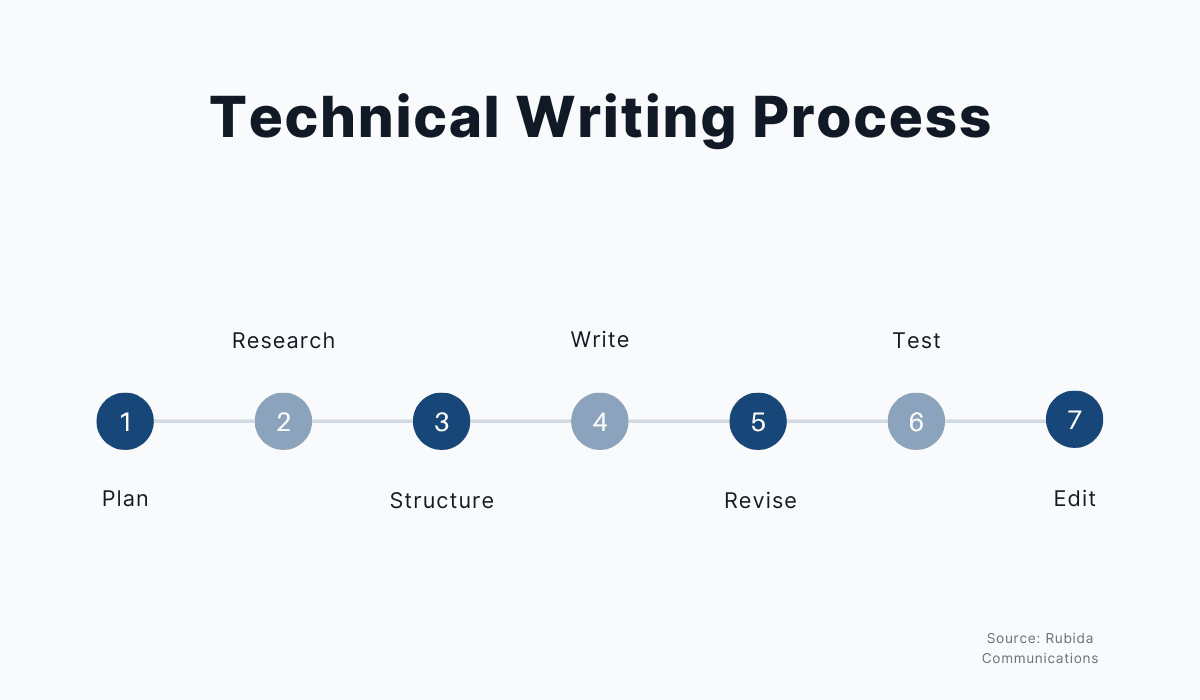 As the image below shows, there are many steps tech writers take before and after writing the text.