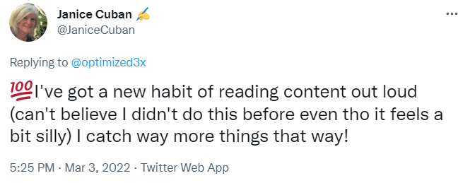 It’s worth noting that reading the text out loud isn’t a practice commonly taught in technical writing classes. Still, regardless of how strange the idea may seem at first, writers tend to include it into their editing practices once they experience how effective the method is.