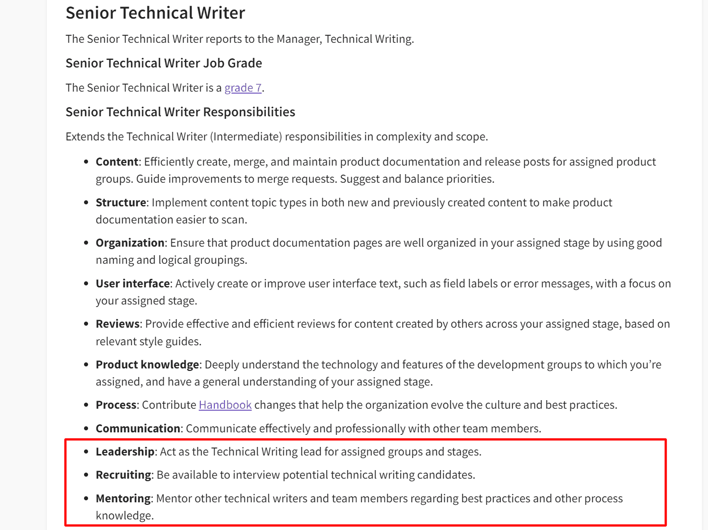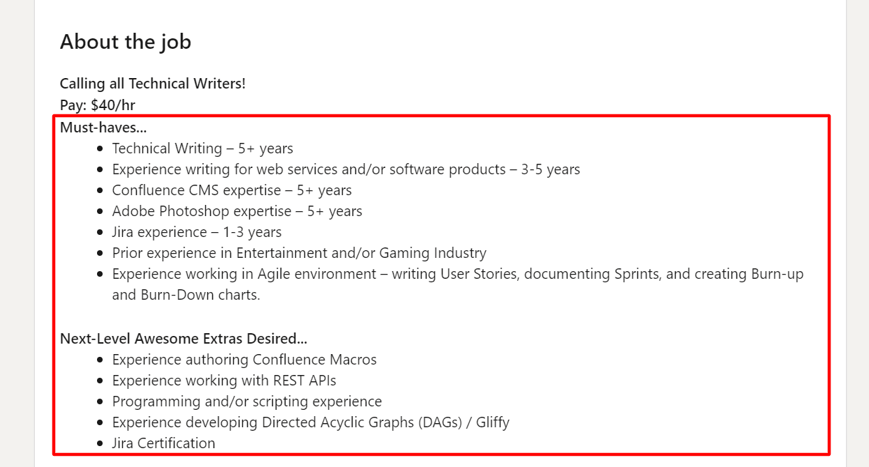 Let’s take a look at a job advertisement for a senior position to learn more about how this position is different from a mid-level technical writer’s: