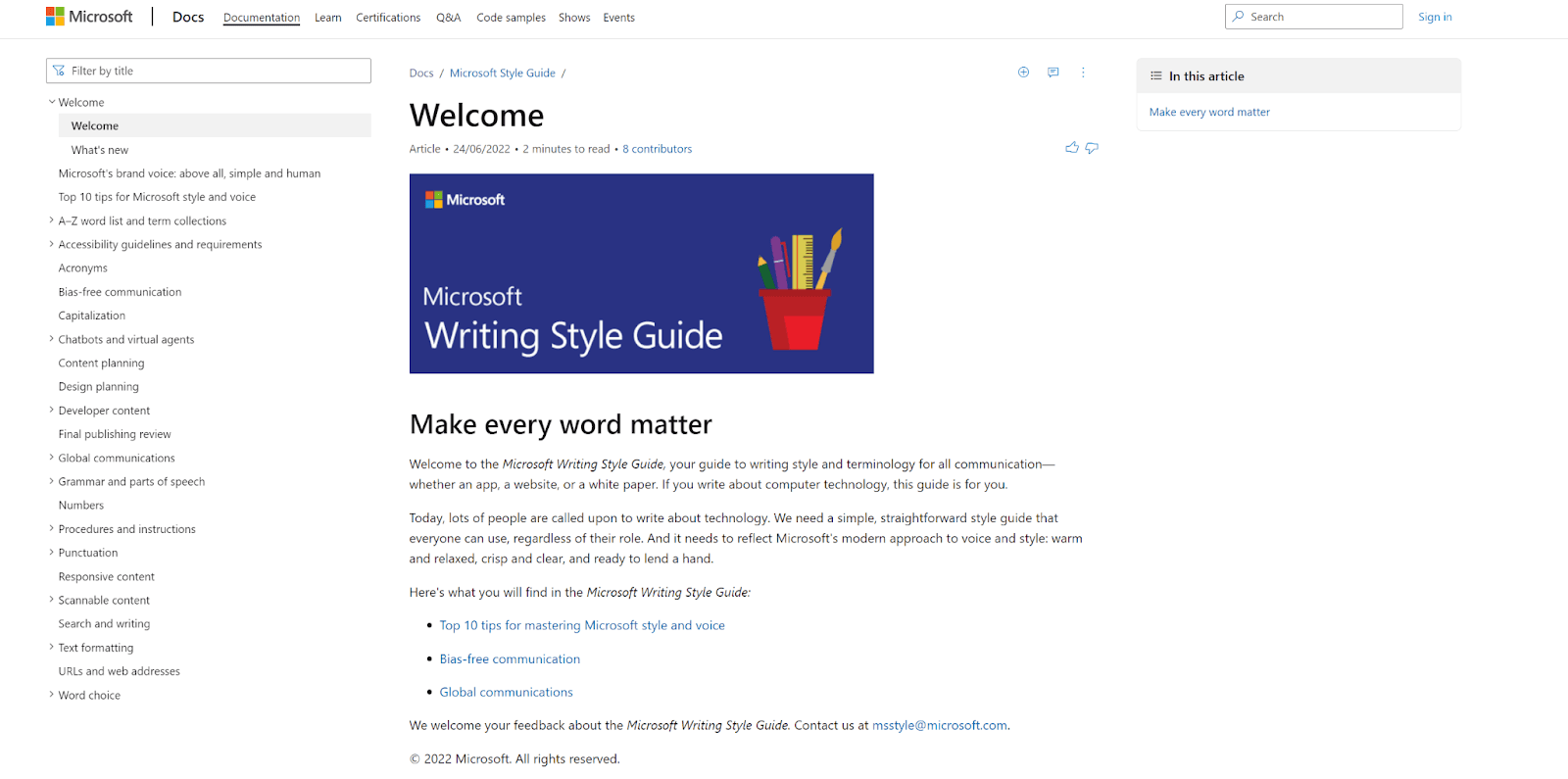 In other words, that the documentation is compliant with the company’s chosen style guide.