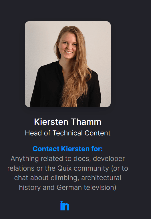In Quix’s case, that role is held by Kiersten Thamm, an experienced technical writer who holds a PhD.