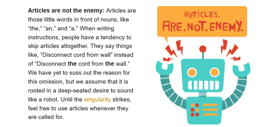 For instance, below, you can see a passage about the use of articles from a chapter that deals with writing clarity.