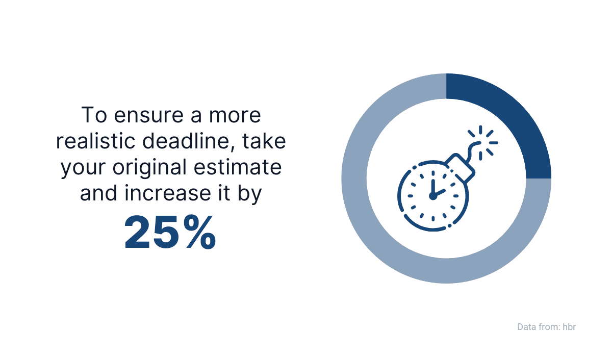 As she advises, adding 25% to your original deadline will make it more realistic.