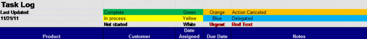 As you can see, he has columns for products, customers, dates, and notes, as well as different colors for different task statuses.