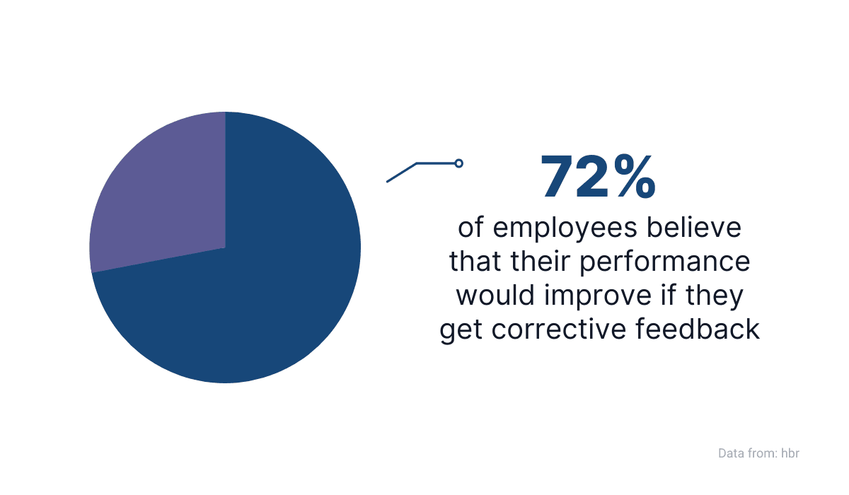 According to research by Jack Zenger and Joseph Folkman, 72% of respondents said their work performance would improve if they got feedback on it.