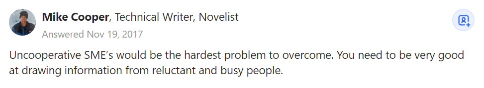 When you look up problems and challenges technical writers face, you’ll come across many forum threads complaining about uncooperative SMEs.