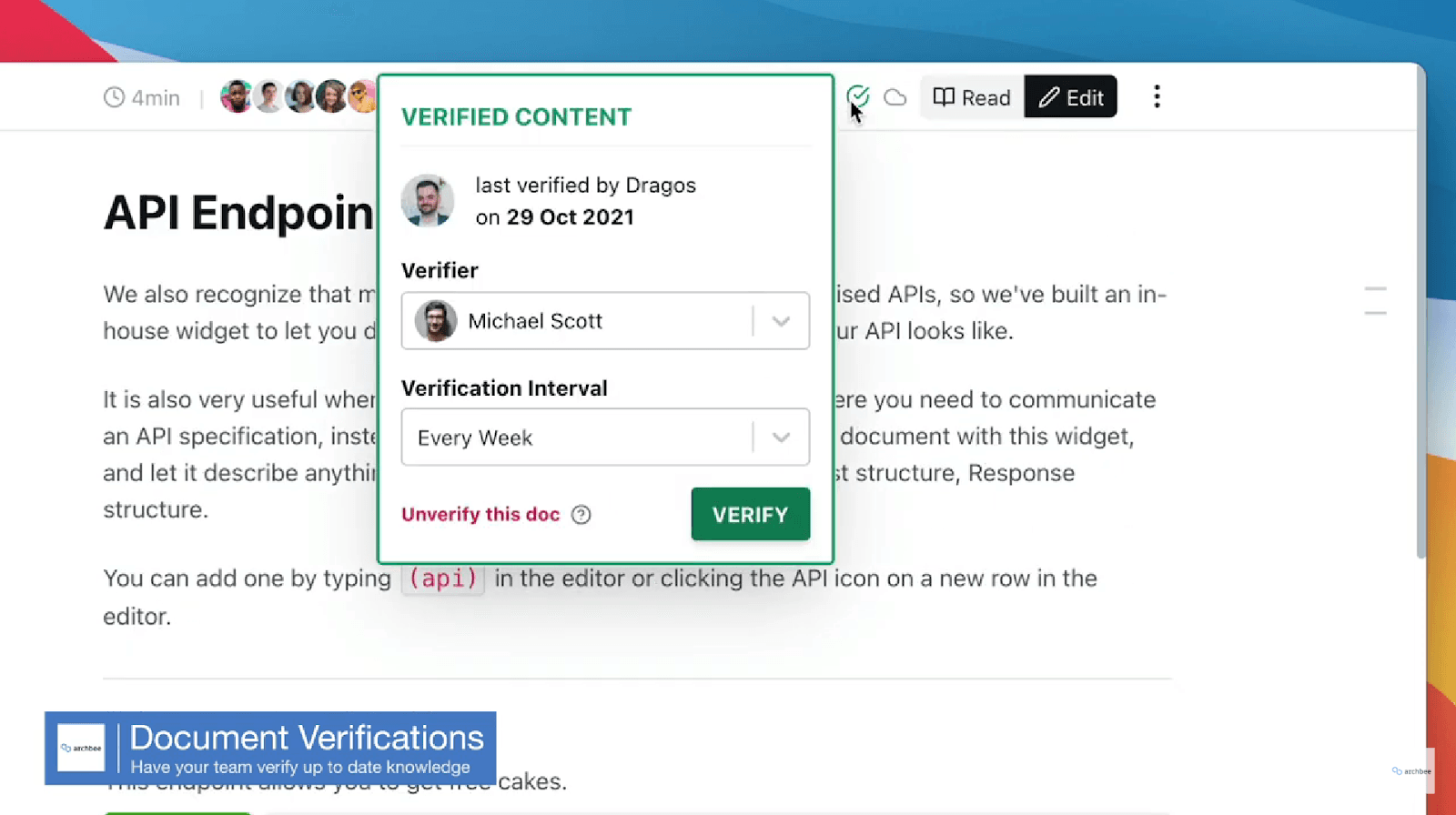 Once again, Archbee has an excellent solution to the problem: document verifications.