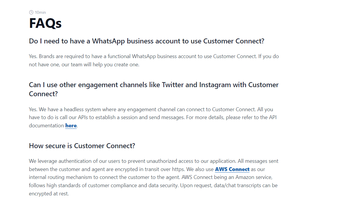 For instance, the FAQ section of the customer engagement platform Vizury contains a series of concise answers.