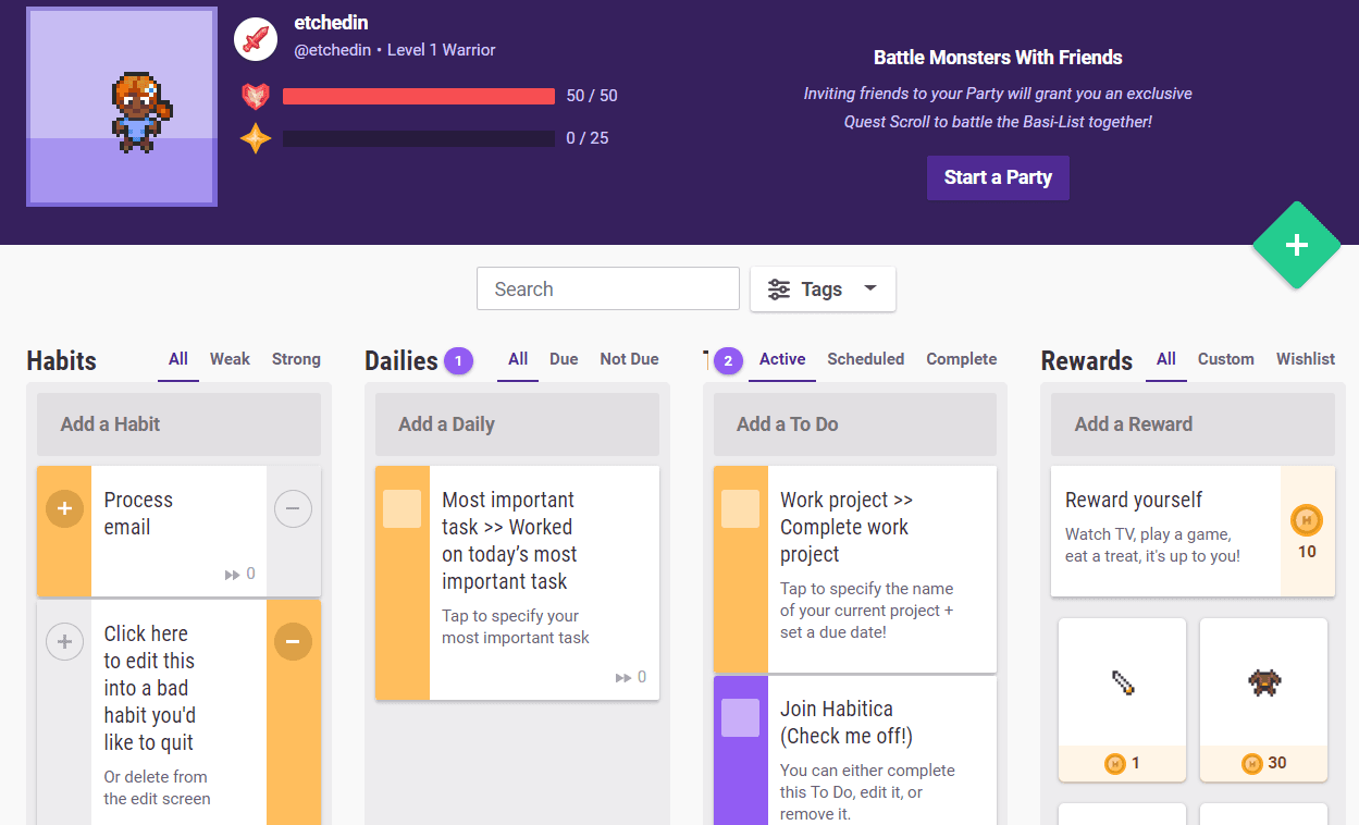 For instance, Habitica is a productivity app that you can use to track your tasks and rewards.