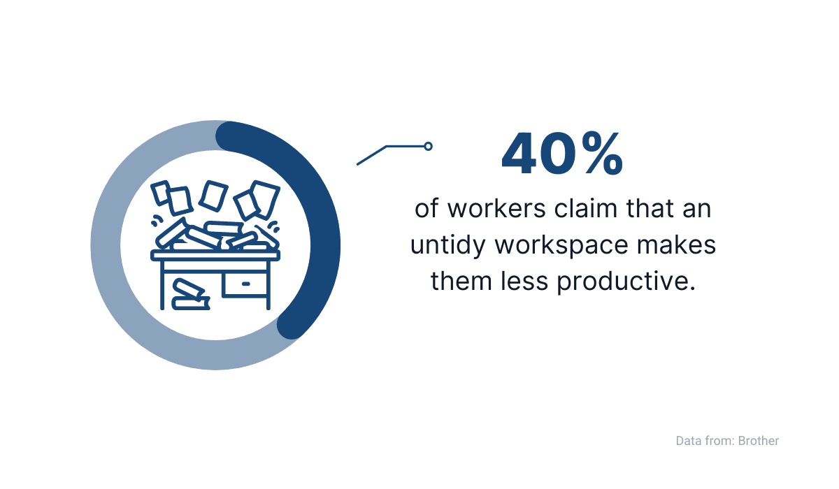 According to a survey conducted on more than two thousand office workers, forty percent of people become less productive when working in an untidy workspace.