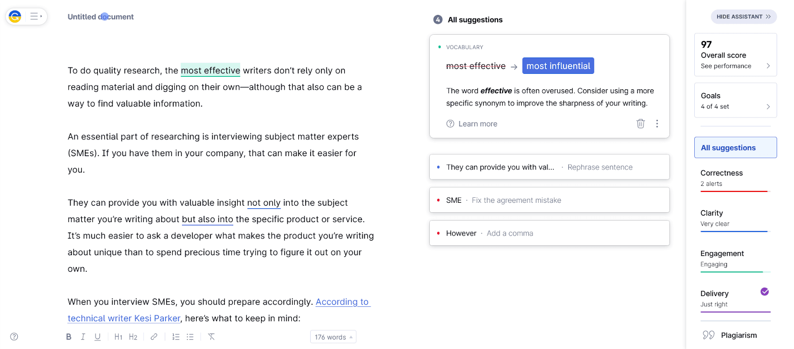 In short, Grammarly is a good choice if you want to raise the standard of your technical writing.